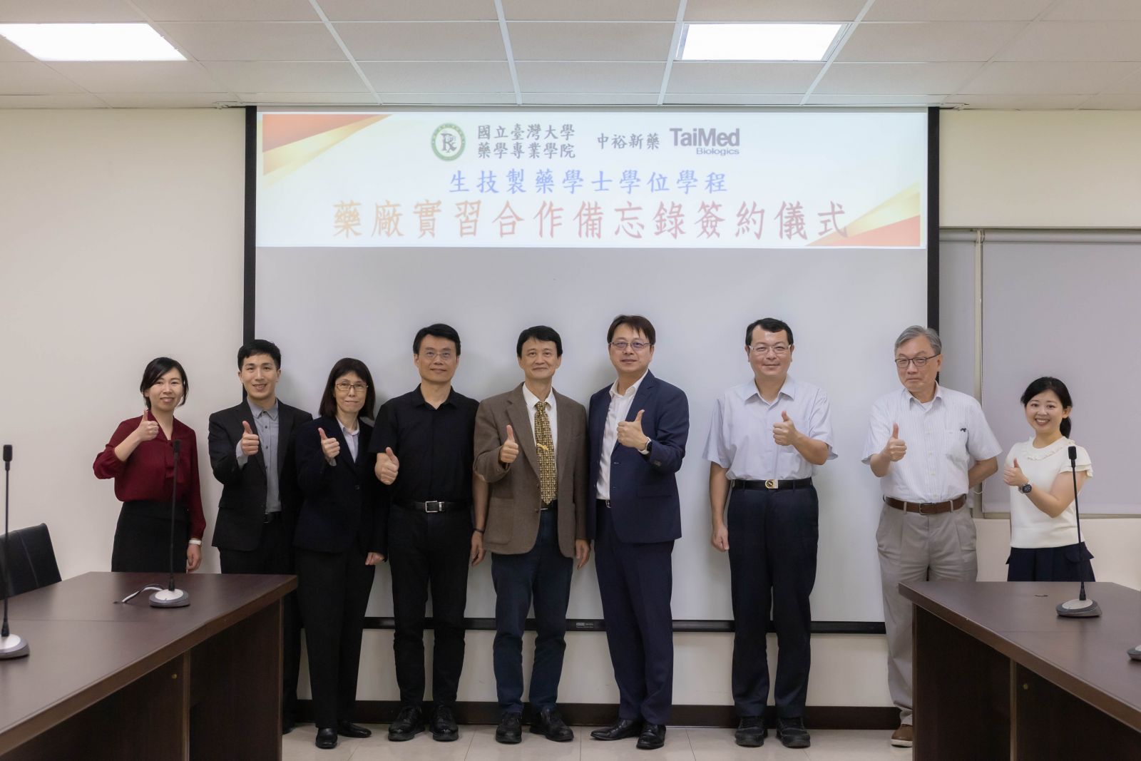 除課堂學習外,學程高度重視實務訓練與產業鏈結,本學位學程已與生達化學製藥、友華生技醫藥、健喬信元醫藥生技、永信藥品工業、中裕新藥、美時化學製藥等國內知名企業簽署實習合作備忘錄,合作企業將提供學生深入參與實習的機會,使其在學期間即能理解產業實務運作,並強化與職涯接軌的能力與視野。