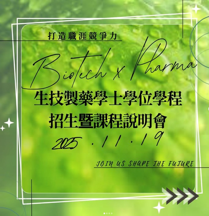 有雙主修或轉系想法的大一生們注意啦!想探索生技與製藥產業的無限可能嗎?生技製藥學士學位學程115學年度招生中!!!