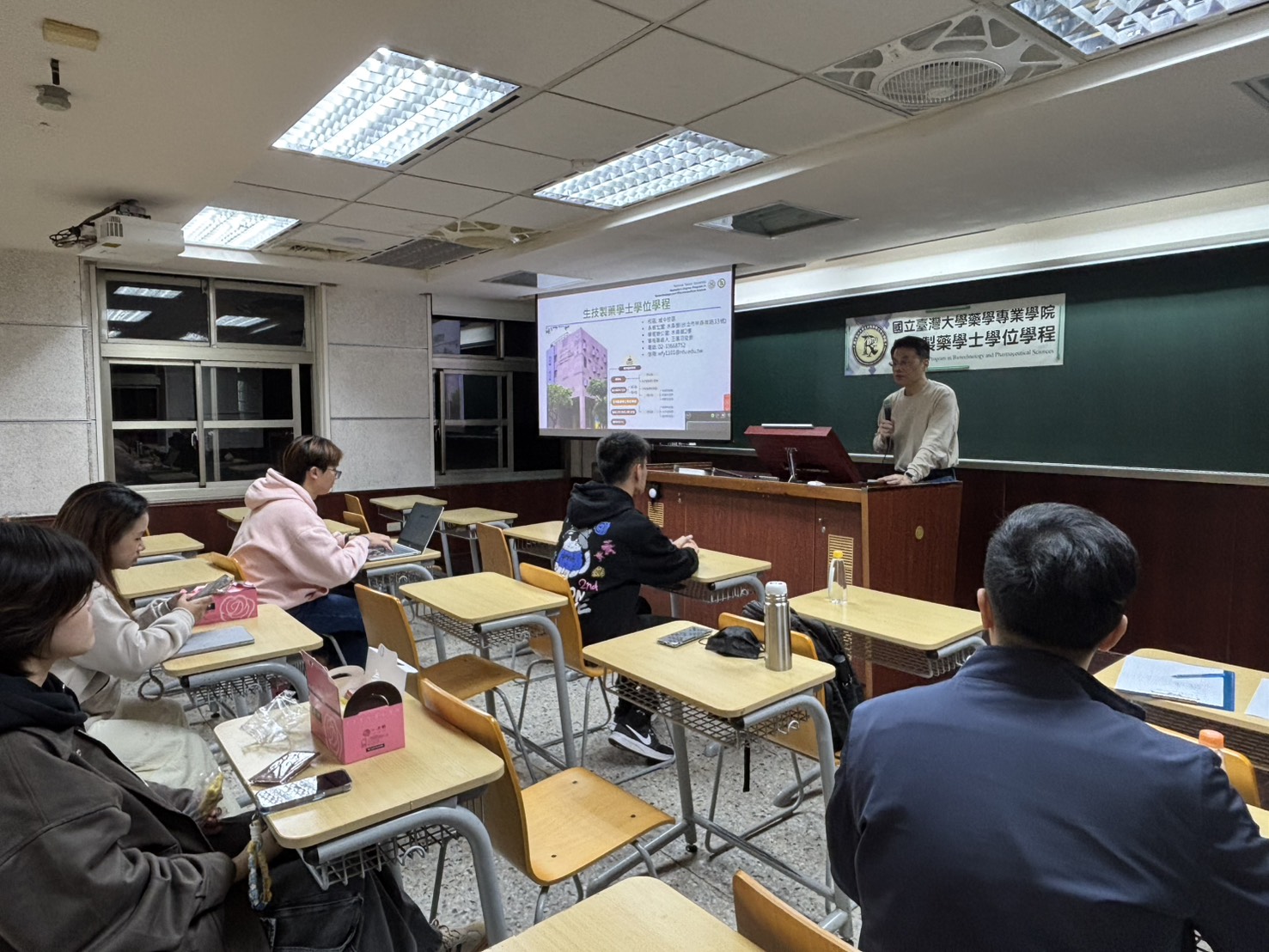 During the session, Program Director Chia-Ron Yang introduced the background and objectives of the program and explained the increasing demand for talent in Taiwan’s biotechnology and pharmaceutical industries. Assistant Professor Wei-Ren Ko then presented the program curriculum and provided information regarding applications for internal transfer and double majors, followed by a question-and-answer session with attending students.